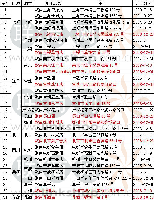 歐尚08年在華擴(kuò)張盤點(diǎn)和門店總數(shù)及分布