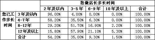 1、從業(yè)八年以上的資深店長多半有其他行業(yè)從業(yè)經(jīng)歷,年輕店長科班出身較多,即大學(xué)畢業(yè)后直接進入零售業(yè)工作。