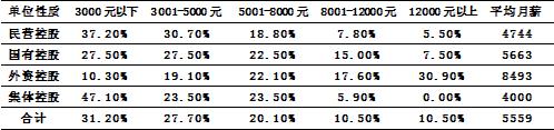 五、外資控股企業(yè)月薪水平領(lǐng)先其他單位
