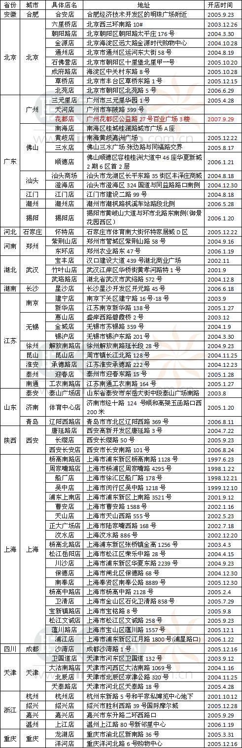 易初蓮花2007年在華擴(kuò)張盤點(diǎn)及門店分布