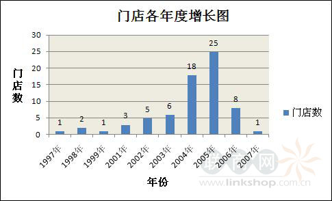各年度門店增長比較圖: