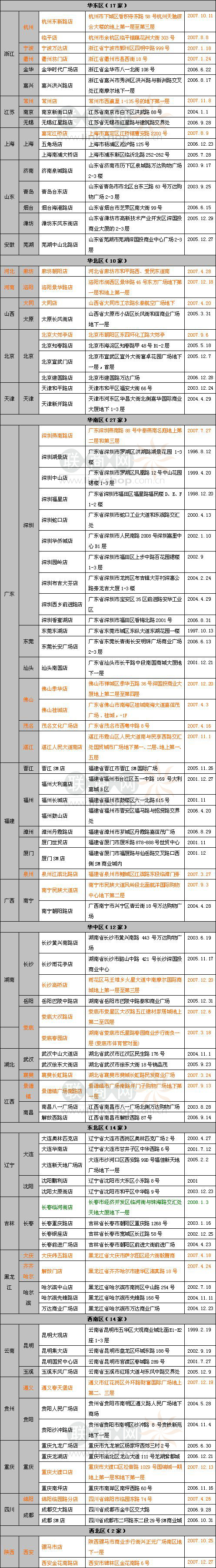 (注:其中橘紅色字體部分為2007年新開門店)