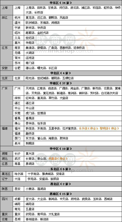 (注:其中橘紅色字體部分為關(guān)閉門(mén)店)
