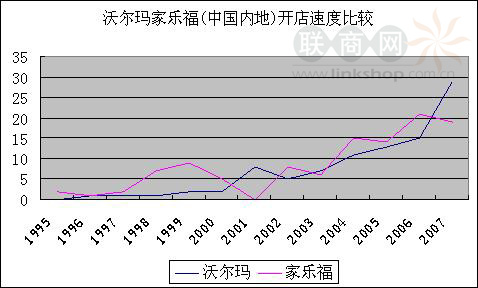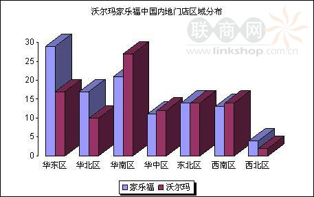 沃爾瑪家樂福中國(guó)內(nèi)地開店速度及門店分布比較
