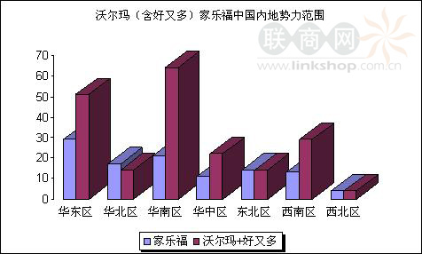 沃爾瑪(含好又多)家樂福中國(guó)內(nèi)地勢(shì)力范圍