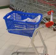 3、由于選址在居民區(qū)開店,為了照顧到居民的高頻率來店次數(shù)和低客單價,家樂福推出了小型購物車。