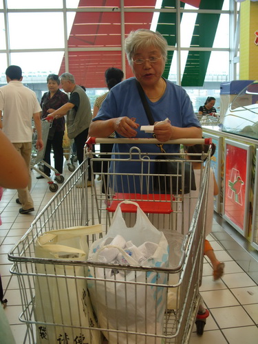 聯(lián)商網(wǎng):奶奶好,我看你的購(gòu)物車(chē)?yán)锛扔协h(huán)保袋也有塑料袋,你知道從今天開(kāi)始超市要向顧客收取包裝袋費(fèi)用了嗎?