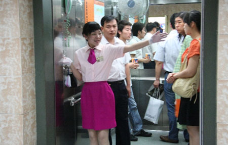 【周平】人們來到這里,坐電梯上樓,馬上就享受到電梯禮儀服務(wù)。電梯實際上是甘家口大廈的一個窗口。我們選擇的電梯禮儀員不僅要求相貌端莊、舉止優(yōu)雅、談吐流利,而且要有一顆真誠為顧客服務(wù)的心,只有這樣,才能展現(xiàn)甘家口大廈的風貌。實際上,自從過去的電梯工換成電梯禮儀員之后,很多人愿意乘坐我們的電梯,喜歡看我們的電梯禮儀員,并接受她們的服務(wù),這就在無形中提升了消費者的愉悅度,購買欲就增強了,間接地給我們增加了商機。