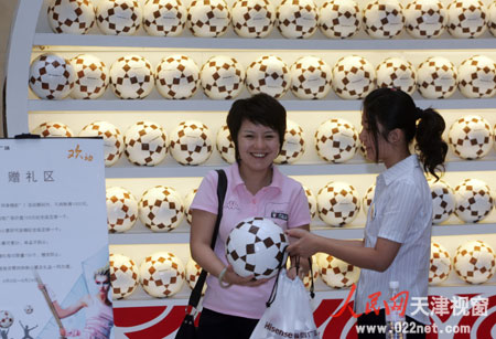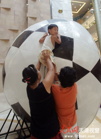 天津商場(chǎng)勁刮奧運(yùn)風(fēng) 超大足球亮相海信廣場(chǎng)