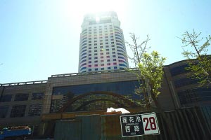 蓮花池西路28號(hào),原先的鵬潤(rùn)建國(guó)大酒店。不過(guò),4月15日下午記者趕到這里時(shí),根本沒(méi)有發(fā)現(xiàn)“鵬潤(rùn)建國(guó)大酒店”的招牌,這座28層的高樓建筑已經(jīng)被圍擋牢牢圍住,圍擋也已經(jīng)塵跡斑斑。
