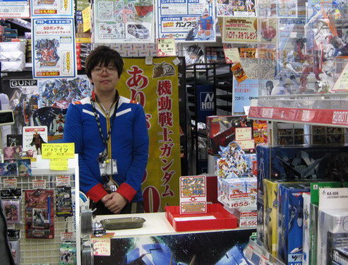 想引起御宅族們的共鳴,怎么辦呢?讓收銀員直接玩機(jī)動(dòng)戰(zhàn)士的COSPLAY吧