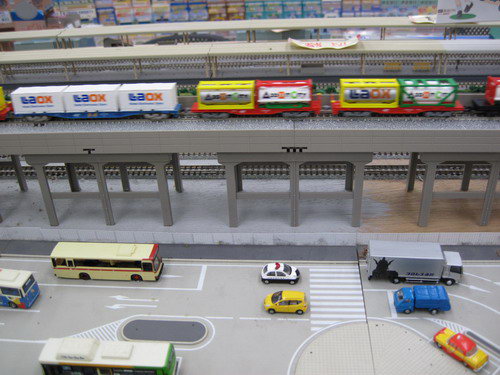 超大規(guī)模的模擬城市軌道玩具,開(kāi)動(dòng)后整個(gè)城市里的車(chē)輛都能像真正的城市里的汽車(chē)那樣運(yùn)轉(zhuǎn)起來(lái),城市軌道上甚至還跑著LAOX的列車(chē)車(chē)皮……