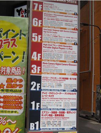 由于其免稅店的定位,LAOX從-1層到2層所銷售的電器和第3層到第7層是有著極大區(qū)別的,其中-1到2層所銷售的產(chǎn)品主要針對(duì)在日本國(guó)內(nèi)使用,而從3層到7層則主要針對(duì)在海外使用的消費(fèi)者,因?yàn)槿毡緡?guó)內(nèi)使用的電器,在電源插頭、電壓要求都于面向外國(guó)銷售的產(chǎn)品有所區(qū)分,所以這種分類,可以防止外國(guó)消費(fèi)者買了產(chǎn)品卻不可以帶回國(guó)使用的尷尬發(fā)生。