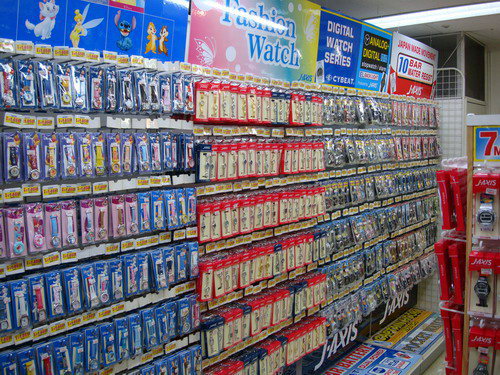 時(shí)尚手表大多采用塑料機(jī)芯售價(jià)低廉,所以采用開(kāi)放式陳列方式了。