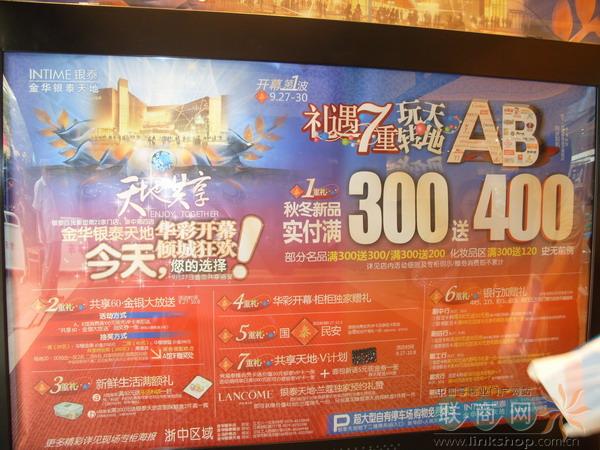 (銀泰天地開業(yè)推出了滿300送400等多重促銷大禮)