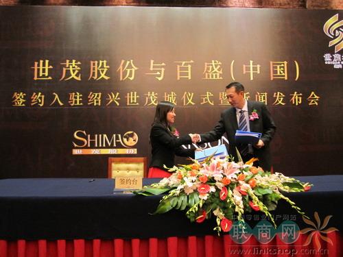 世茂股份總裁許薇薇和百盛(中國)南區(qū)首席執(zhí)行官陳漢民現(xiàn)場簽署協(xié)議