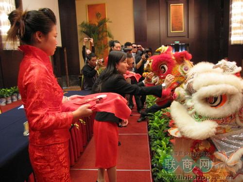 世茂股份總裁許薇薇和百盛(中國)南區(qū)首席執(zhí)行官陳漢民為舞獅點“睛”
