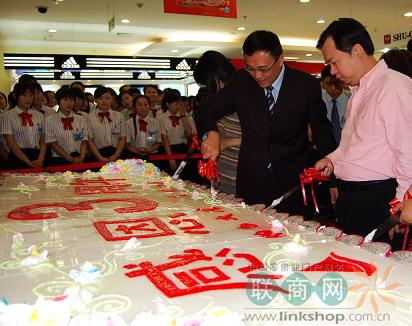 山東銀座商城菏澤店3周年慶,店總馬永章(左一)切蛋糕