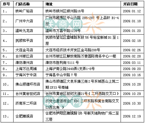 2009年,TESCO樂(lè)購(gòu)在華內(nèi)地新開出13家門店,以下是詳細(xì)分布: