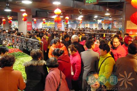 重慶國貿(mào)廣場店位于重慶市萬州區(qū)五橋安順路72號國貿(mào)廣場,營業(yè)面積逾8000平方米,是一個以經(jīng)營生鮮農(nóng)產(chǎn)品為主,以日用百貨、食品和服裝鞋帽為輔的大型綜合超市。下圖為國貿(mào)廣場店開業(yè)盛況: