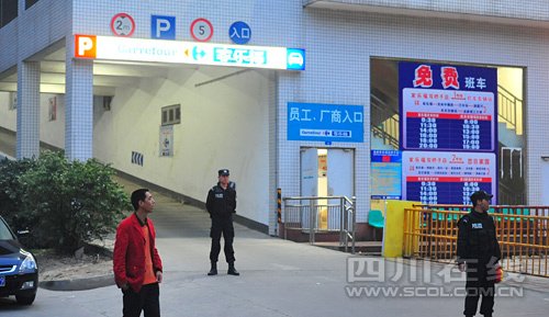 19時(shí)35分,身著防爆護(hù)具的特勤人員由員工通道進(jìn)入家樂(lè)福。