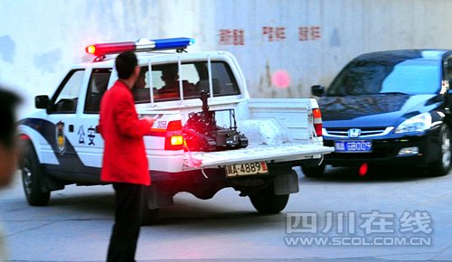 6時(shí)許,記者在雙橋子家樂(lè)?吹剑笈瘎(wù)人員已將現(xiàn)場(chǎng)封鎖,家樂(lè)福以東的經(jīng)華南路也實(shí)施了交通管制。在家樂(lè)福正門(mén)口,警方正在調(diào)試排爆機(jī)器人,隨后用一輛警車(chē)將機(jī)器人送入家樂(lè)福停車(chē)場(chǎng)附近區(qū)域。17時(shí)35分,兩名身著防爆護(hù)具的特勤人員由員工通道進(jìn)入商場(chǎng),一輛皮卡車(chē)隨即跟來(lái),將裝備送進(jìn)商場(chǎng)內(nèi)。