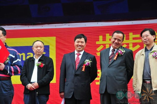 新店開業(yè),步步高董事長王填(右三)和超市事業(yè)部總裁Noel Trinder(右二)都笑的很開心,王填笑稱:步步高又生了一個兒子,而且是一個非常優(yōu)秀的兒子,自己覺得非常自豪。