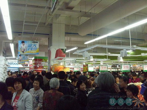 生鮮食品區(qū)的顧客比農(nóng)貿(mào)市場的人還多。