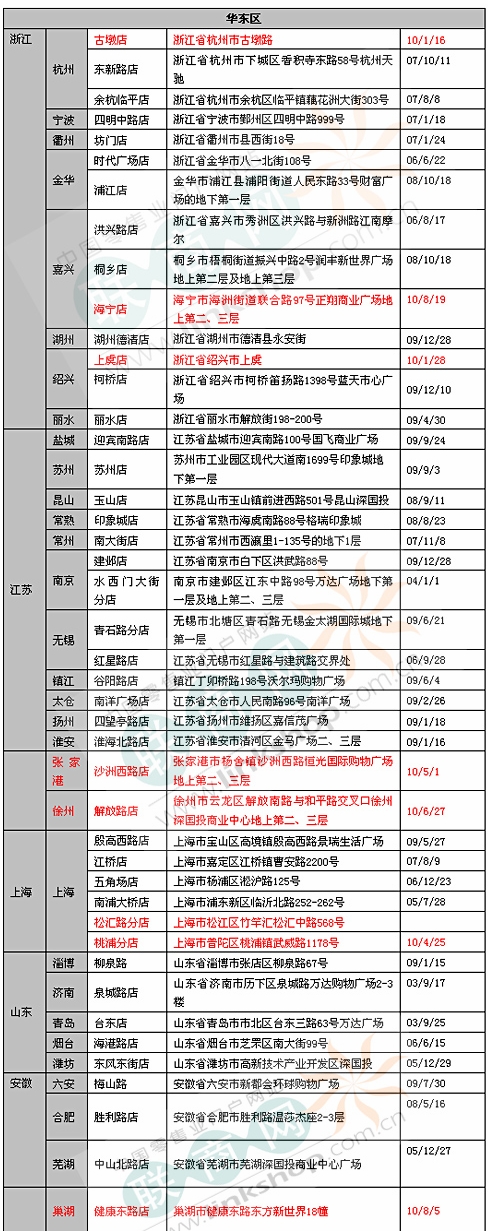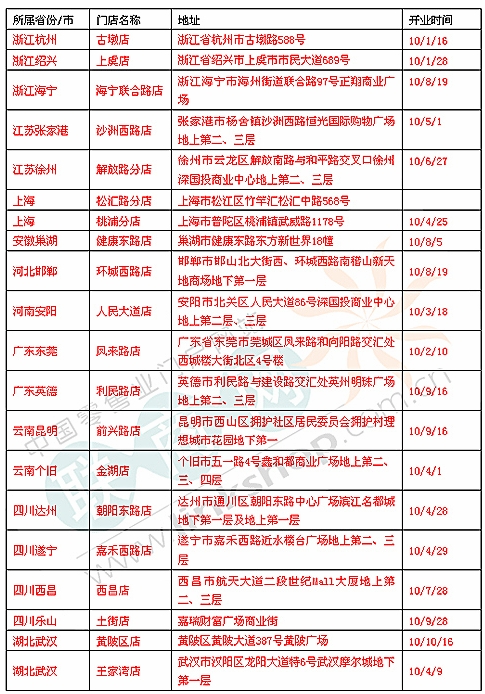 新增門(mén)店分布情況為浙江新增3家,江蘇增加2家,上海增加2家,安徽1家,河北1家,河南1家,廣東1家,云南2家,四川4家,湖北兩家。