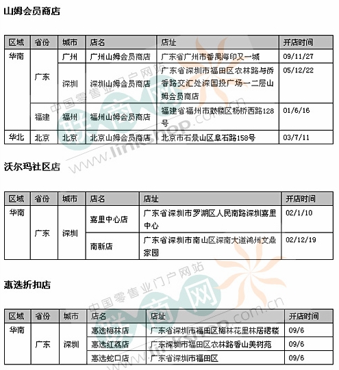 沃爾瑪前3季度大陸地區(qū)新開(kāi)店統(tǒng)計(jì)