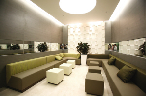 樂天百貨總面積5萬平方米,卻投入20%作為休息專區(qū)。“為愛守候”專區(qū)是人性化設(shè)計(jì)的極致體現(xiàn):它是在洗手間旁邊的休息室,情侶間有一方進(jìn)洗手間,另一方則可在溫馨舒適的“為愛守候”專區(qū)休息等待。購物區(qū)配搭大面積的休息區(qū),有的設(shè)計(jì)成客廳樣式,有的擺放工藝品和瓷器,有的提供MV觀看及閱讀。