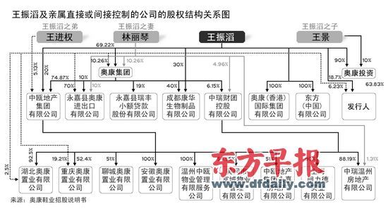在經(jīng)歷多次注冊資本變更后,奧康投資的持股比例為63.83%,由于奧康鞋業(yè)第二大股東王振滔持有奧康投資90%股權(quán),且王振滔直接持有奧康鞋業(yè)18.70%的股權(quán),其直接和間接共持有奧康鞋業(yè)76.15%的股權(quán)(24366.477萬股),王振滔為奧康鞋業(yè)的實際控制人。