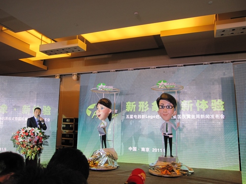 在發(fā)布會上,五星電器副總裁景星介紹了五星電器新的品牌代言人——小伍和小新,將于國慶黃金周開始全面投放市場。據(jù)介紹,小伍、小新的設(shè)計原型來自五星電器家電顧問。新形象擬人化、個人性,希望能為廣大消費者提供更好的服務(wù)。