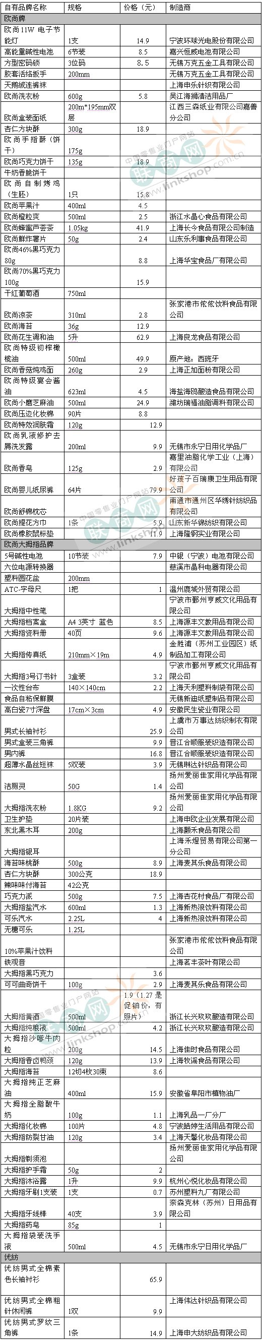 聯(lián)商獨家:歐尚超市自有品牌調查