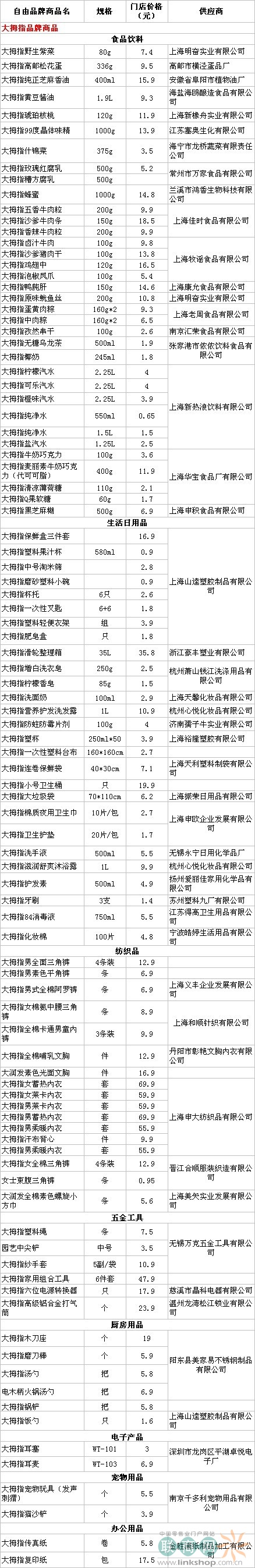“大拇指”自有商品的品牌明細(xì)表: