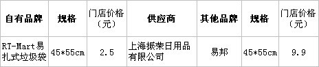 分析:45*55規(guī)格垃圾袋,“RT-Mart”與“易邦”差價(jià)竟有7.4。