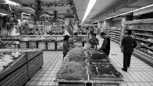 在蔬菜區(qū),兩個男員工正推著一車的蔬菜準備上貨。記者上前打聽:“聽說你們超市要關(guān)門了?”其中的一位笑笑:“沒有通知下來。”