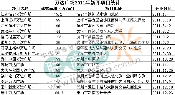 萬達廣場2011年開業(yè)項目大盤點