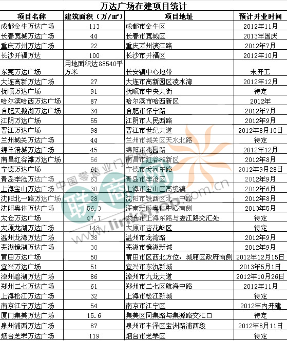 三、在建萬達廣場盤點(不包括萬達其他項目)