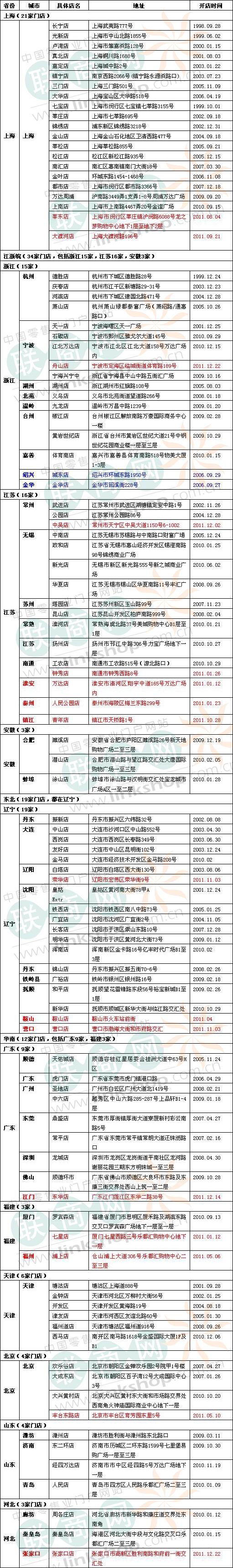 。(lián)商網(wǎng) 章莉/統(tǒng)計整理 轉載請務必注明出處、作者!如有門店統(tǒng)計遺漏,請廣大熱心網(wǎng)友指正!)