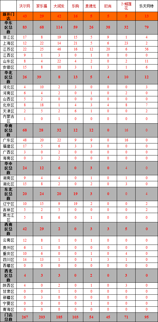 二、各大外資超市在華門(mén)店對(duì)比圖: