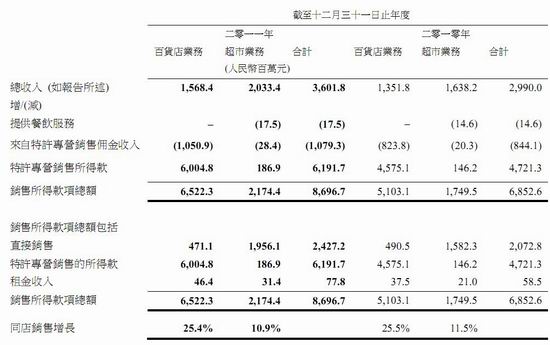 期內(nèi),銷售所得款項(xiàng)總額增至86.97億元,按年增長26.9%;百貨店業(yè)務(wù)銷售所得款項(xiàng)總額增至65.22億元,按年增長27.8%,超市業(yè)務(wù)銷售所得款項(xiàng)總額增至21.74億元,增長24.3%。百貨店業(yè)務(wù)及超市業(yè)務(wù)的同店銷售增長分別25.4%及10.9%。