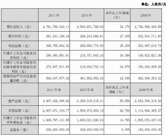 聯(lián)商網(wǎng)消息:湖南友誼阿波羅商業(yè)股份有限公司公布2011年度業(yè)績報告。報告顯示,公司實現(xiàn)營業(yè)收入47.82億元,同比增長34.17%;營業(yè)利潤3.81億元,同比增長27.40%;歸屬于母公司所有者的凈利潤2.90億元,同比增長34.39%。報告期末,公司資產(chǎn)總額49.07億元,歸屬于上市公司股東的所有者權(quán)益19.09億元,加權(quán)平均凈資產(chǎn)收益率16.34%,基本每股收益0.832元。