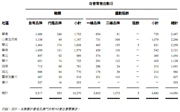 與鞋類業(yè)務(wù)不同,運(yùn)動(dòng)服飾業(yè)務(wù)目前以經(jīng)銷代理為主,包括一線運(yùn)動(dòng)品Nike及Adidas,二線運(yùn)動(dòng)品牌Kappa、PUMA、Converse及Mizuno等。一線品牌與二線品牌的劃分,一方面是基于業(yè)務(wù)重要程度,Nike和Adidas兩個(gè)品牌的銷售占本集團(tuán)運(yùn)動(dòng)服飾業(yè)務(wù)85%以上;另一方面是考慮營(yíng)運(yùn)、管理以至績(jī)效上的差異與共性,Nike和Adidas品牌在中國消費(fèi)者群體中認(rèn)知度高及貨品結(jié)構(gòu)豐富,單店規(guī)模一般遠(yuǎn)遠(yuǎn)大于二線品牌,盈利能力亦較強(qiáng)。