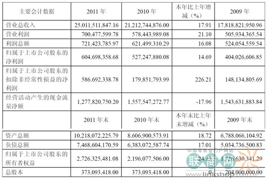 重慶百貨2011年?duì)I收250億 凈利潤(rùn)6.05億