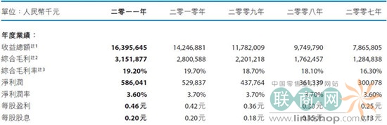 物美商業(yè)2011年收益總額為163.96億