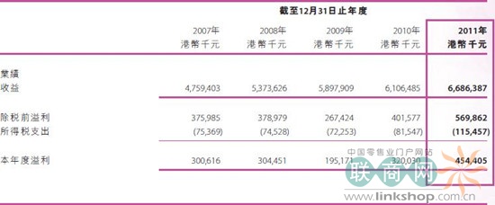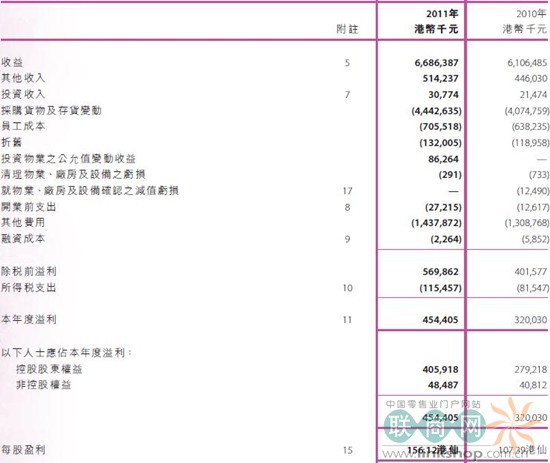 永旺2011年全年總收益達(dá)66億港元