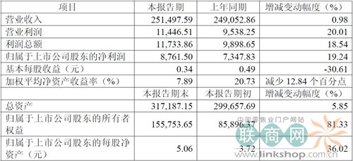 報(bào)告顯示,翠微股份在報(bào)告期內(nèi)實(shí)現(xiàn)營(yíng)業(yè)收入為25.1億元,同比增長(zhǎng)0.98%;利潤(rùn)總額為1.17億元,同比增長(zhǎng)18.54%;歸屬于上市公司股東的凈利潤(rùn)8761.50 萬(wàn)元,同比增長(zhǎng)19.24%,這主要因?yàn)榇湮⒐煞菡{(diào)整商品結(jié)構(gòu),經(jīng)營(yíng)成本降低,毛利率水平提升。