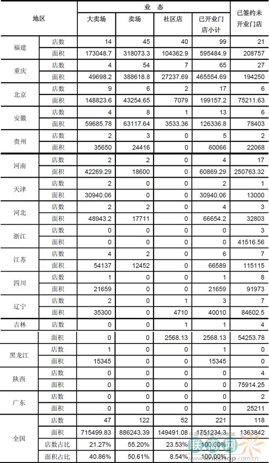 永輝超市堅持 “積極與‘大地產(chǎn)商、大百貨’合作”的戰(zhàn)略思路,2012年上半年在新開門店和新簽約門店都按計劃進(jìn)行。上半年新開業(yè)門店18家,同比增長63.64%,關(guān)店一家。已開業(yè)門店遍及全國13個省市,經(jīng)營面積178.61萬平方米,單店面積提升到8千平米以上。已簽約未開業(yè)門店達(dá)118家,面積136萬平方米。