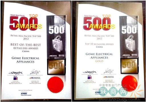 2012亞太零售500強(qiáng)發(fā)榜 國美獲最高獎(jiǎng)項(xiàng)